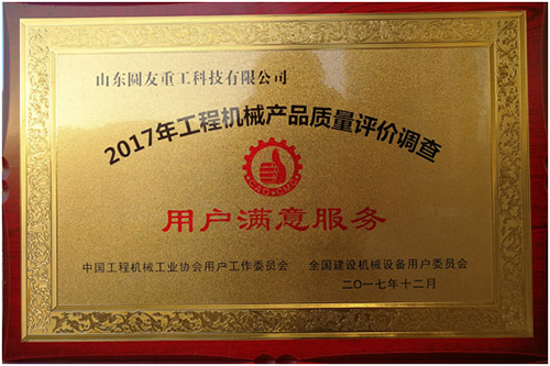圆友重工荣获“全国用户满意产品”和“用户满意服务单位”
